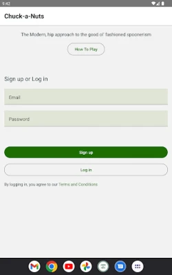 The Chuck-a-Nut puzzle is based on the concept of spoonerisms--when the sounds or syllables of two words are exchanged. An example of this would be the phrase "light a fire" turning into the phrase "fight a liar". In the game, users are given two clues of two spoonerims, and have to figure out the correct answers. There are three hints to assist players, and a "Beats Me!" button if they just can't figure it out. Once they submit answers--correct or not--they get a scorecard with the day's results (with hints used and time taken) that they can share via text, email, etc. It's a short, sweet, fun daily activity that will entertain (and possibly enlighten) users of all ages!