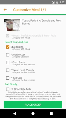 Choosi lets you customize and pre-order grab & go meals from your school's cafeteria! Skip the lunch line and have more time to eat and hang out with your friends. Students, parents, and teachers can use Choosi to view their school's breakfast and lunch menus as well as nutrient and allergen information.