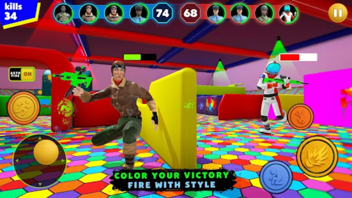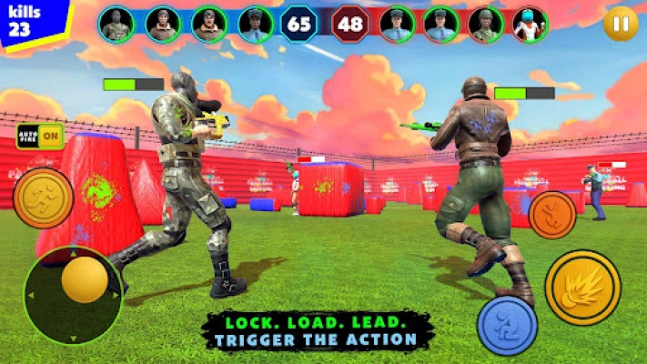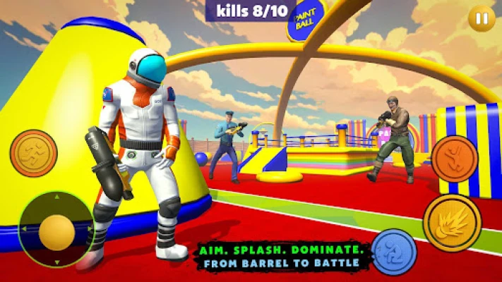 Unlock and upgrade your favorite blasters for different strategies and enjoy paintball color shooting game.