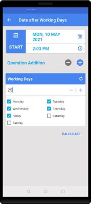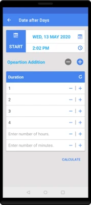5.App support two modes, addition and subtraction to calculate difference between date, days , weeks and time.