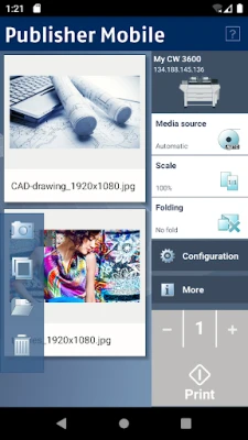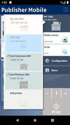 With Publisher Mobile, you can print your PDF, DWF, PLT (HP-GL, HP-GL/2, HP RTL), JPG, and TIFF documents to lotters. Reprint your documents, scale your plots, access the main settings, view the queue, media and ink/toner status of your plotter at any time. Available in 20 languages.