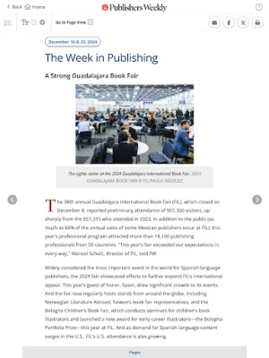 Publishers Weekly is the international news platform of book publishing and bookselling. Founded in 1872 and published continuously since then, the weekly magazine boasts more than 500,000 Twitter followers; publishes eight e-newsletters; monthly PW Select , three blogs; and a robust Web site that reached more than 8.5 million unique visitors last year. The magazine has also launched a mobile edition, digital editions and apps. Each year, Publishers Weekly reviews nearly 9,000 books, as well as e-books, apps and audiobooks, in addition to featuring author interviews and news and analysis about the world of publishing.
